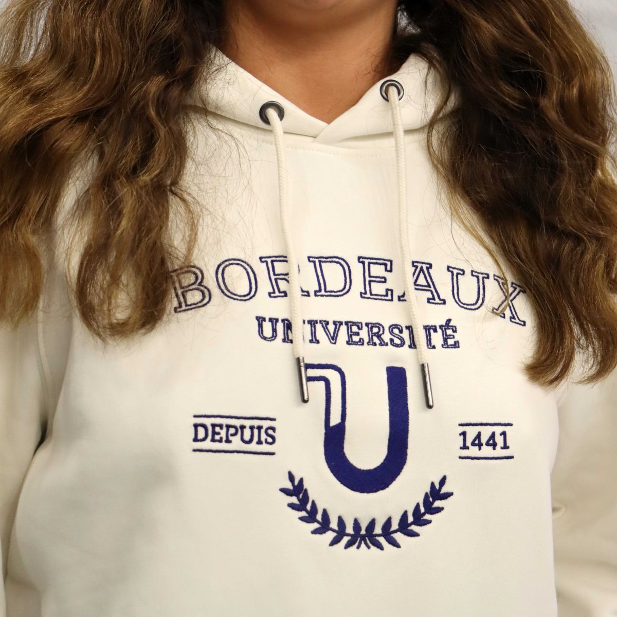 Sweat-shirt à capuche brodé - 85% Coton bio, 15% Polyester recyclé - 350 g/m² - Taille : XS, S, M, L, XL, XXL - Coloris blanc ivoire - Fabriqué en Asie - PU TTC : 39,00 € -
